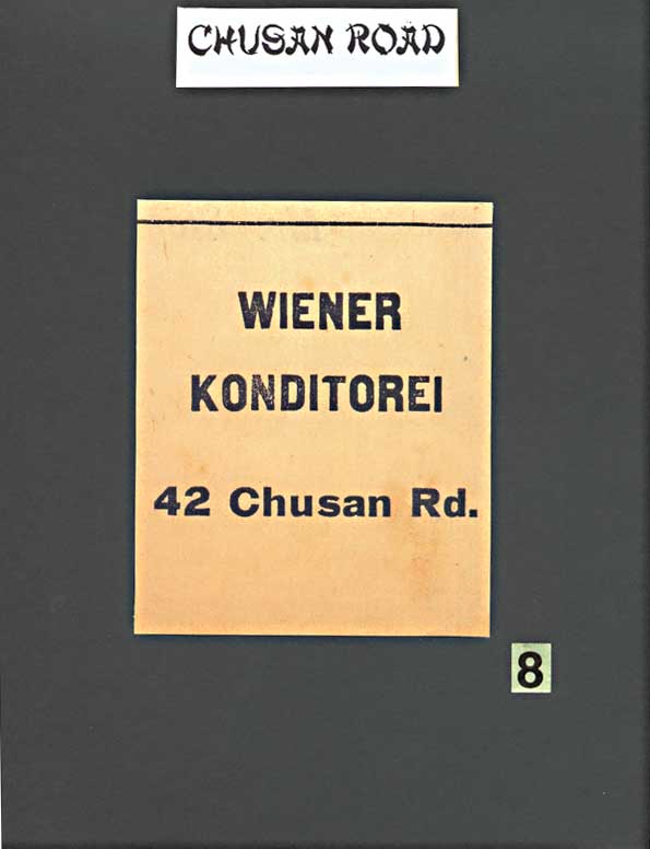 We begin our nostalgic tour on Chusan Road corner Ward Road with a visit to Marlene Sweet Shop (figure four) , where Zenta, an attractive young hostess, was serving Sahnen Ice Cream in a cone daily beginning at noon; indeed a rare and expensive treat in those days. As we continue walking on Chusan Road toward "den kleinen Wayside Park", we approach Hongkew‘s Restaurant Row where, with a few "Knackedicke Dollars", we could indulge ourselves in "ein heimisches Gericht" (native dish). On the left side of the street, on Chusan Road, was Sidas Restaurant (figure five) where, on climbing a very narrow and curved staircase, we could feast on an authentic Wiener Schnitzel. Across the street, were four of the most popular restaurants of Hongkew shown in figure six: International, Café Europe, Delikat, and Barcelona, all owned and operated by Jewish refugees who brought "die Feinkost" (gourmet taste) from their native country. For many refugees with a limited budget, and that was the greater majority, or those stopping for a late snack, Ollendorff (figure seven), located at the corner Chusan Road and Ward Road, always hit the spot. And who could forget "Die Wiener Konditorei" (figure eight), located at the heart of Chusan Road, where refugees, able to afford the mouthwatering pastries, spent their afternoon Kafeklatsch. Sahn Baiser, Schweine Ohr, Bienen Stich, and Pariser Spitz, their specialty, were among the wide assortment of Viennese pastries offered to their customers. Advertisements of different kind of stores on this particular and popular block called Chusan Road are illustrated in figure nine. There were, of course, other popular streets within the twelve block long and five block wide Hongkew Ghetto (figure ten), with a variety of stores and work- shops that met the needs for the twenty, or so, thousand refugees. There was Tongshan Road, Wayside Road, and Kumping Road, and perhaps a few others, however, Chusan Road will remain the most remembered and talked about street among all remaining Shanghailanders. To validate this assumption, we turn to the bimonthly Igud Yotzei Sin Bulletin where we find a column published regularly under the title, "Chusan Road Chatter ". A return visit in 1979 by Treasury Secretary W. M. Blumenthal to his parent’s flat (single room apartment) at 59 Chusan Road, while on an economic mission under the Carter Administration, brought back profound memories of his young adult life on this popular street. |