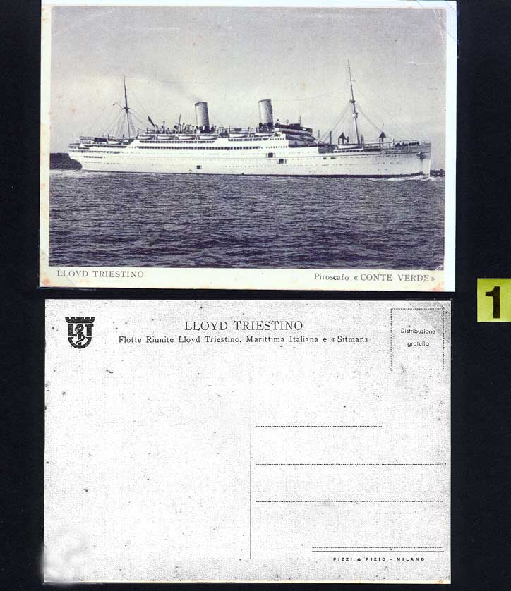 The ship’s line emblem of Lloyd Triestino and Lloyd Sabaudo are shown on