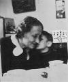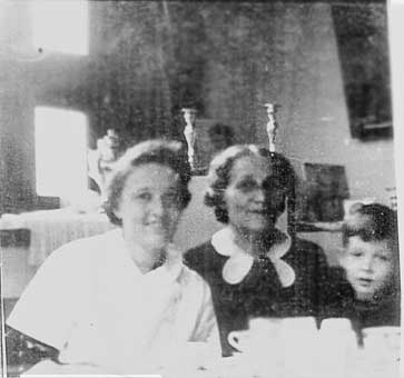 shows my mother, grandmother, and again yours truly, sitting at the table in our flat, with the candleholders in the background.